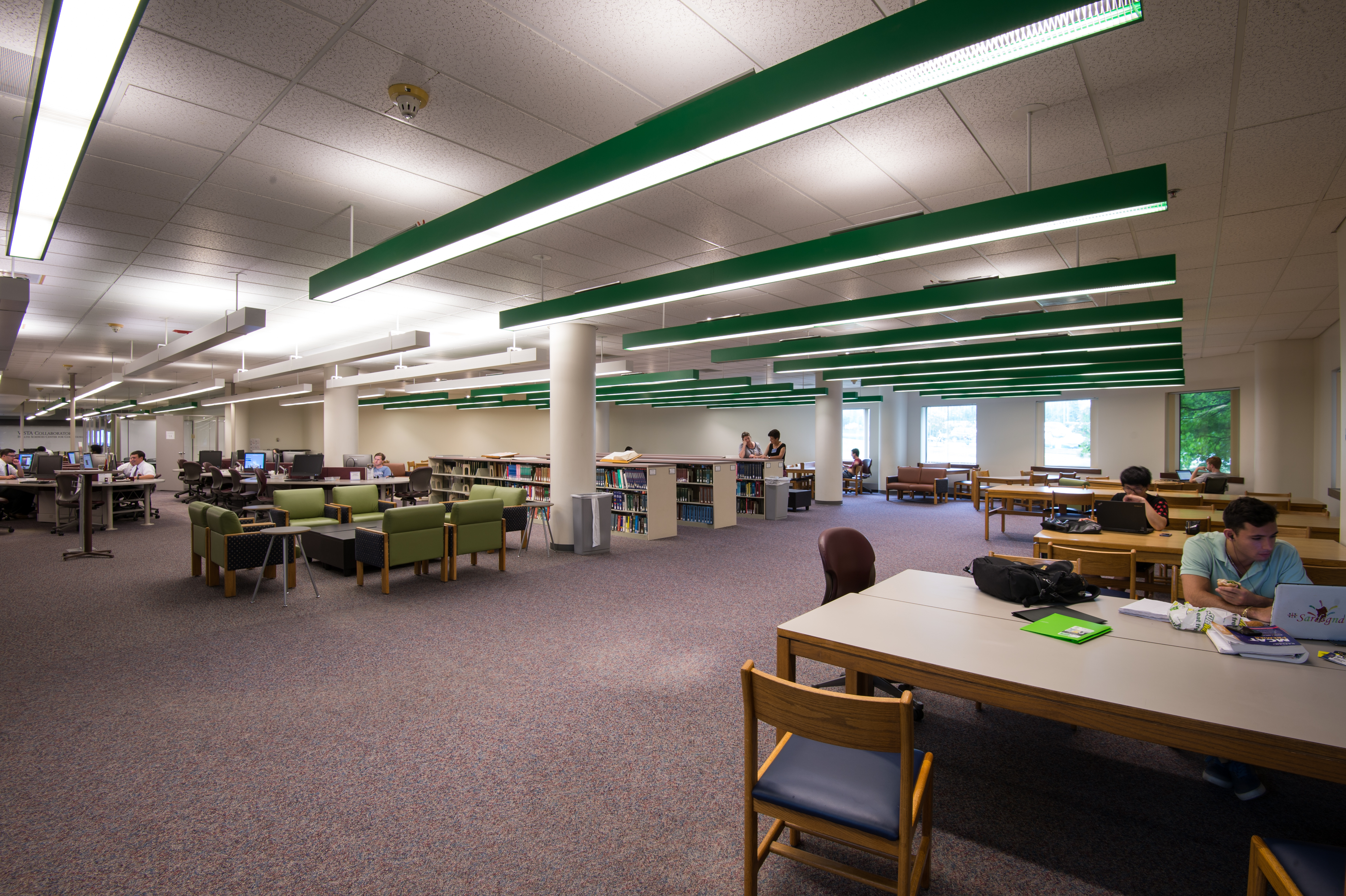 Built in 1987, the Chester F. Carlson Library is located within the Computer Studies Building. The library offers a variety of spaces for quiet or collaborative work. Some rooms may be reserved some in advance through our booking system. Public computers and printing are also available in the library.